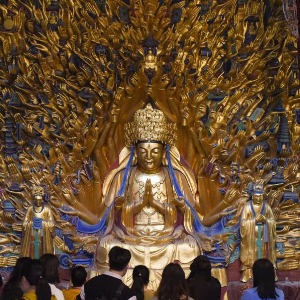2022年7月首映的球幕电影,是活化利用大足石刻的另一个尝试。“除了多角度、全景式的体验,影片还让一些隐藏在深山中游客难以见到的石窟造像、一些被岁月侵蚀的石刻艺术,在影像中活了起来。”大足石刻研究院院长蒋思维说,电影中的绝大部分素材都源于大足石刻文物数字化复原成果。