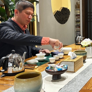茶学堂内精美的茶器、琳琅满目的茶叶、清新淡雅的茶香,让Rolly Perez和他的朋友Rodith Gabayeron沉浸其中。在高洁的指导下,他们体验了茶艺的基本礼仪。双手奉茶、茶斟七分满、以礼还礼,这些细节无不体现了中国传统的哲学思想和生活智慧。