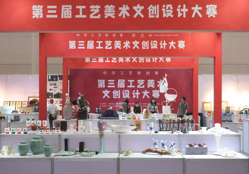 5月10日在博览会上拍摄的第三届工艺美术文创设计大赛参赛作品。