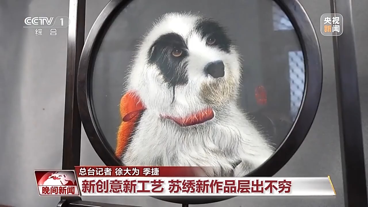 探索苏绣的新发展,江苏苏州的一代代绣娘们一直在为此努力着。这幅今年年初新出炉的双面三异绣作品,由两位绣工配合完成,同一张丝织底料,正面是白色的小狗,翻转过来,就变成了一只栩栩如生的金丝猴。