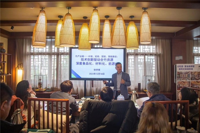 近年来,新发展理念兴起,消费方式转型,信息化应用广泛,工业化、城市化进程加快,多方因素共同推动了各产业链绿色发展理念的形成。各产业链纷纷朝着技术研发、资源充分利用、生产、加工、销售一体化方向拓展,通过补链、延链、固链、强链实现专业化、规模化。徐孝雅潜心研究,再一次抓住了新时代发展机遇,从2022年5月开始积极调研全竹资源利用产业生态,全力构建全竹资源食品化、材料化、能源化产业链,并提出实现“种植无害、养殖无抗、乡村无废、空间无醛”的挑战性目标,并获得重要进展。