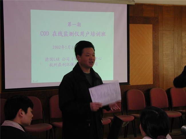 图为 2002年1月徐孝雅在杭州主持用户培训班