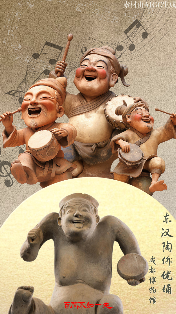 有请能说会唱、神态诙谐的东汉陶俳优俑