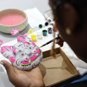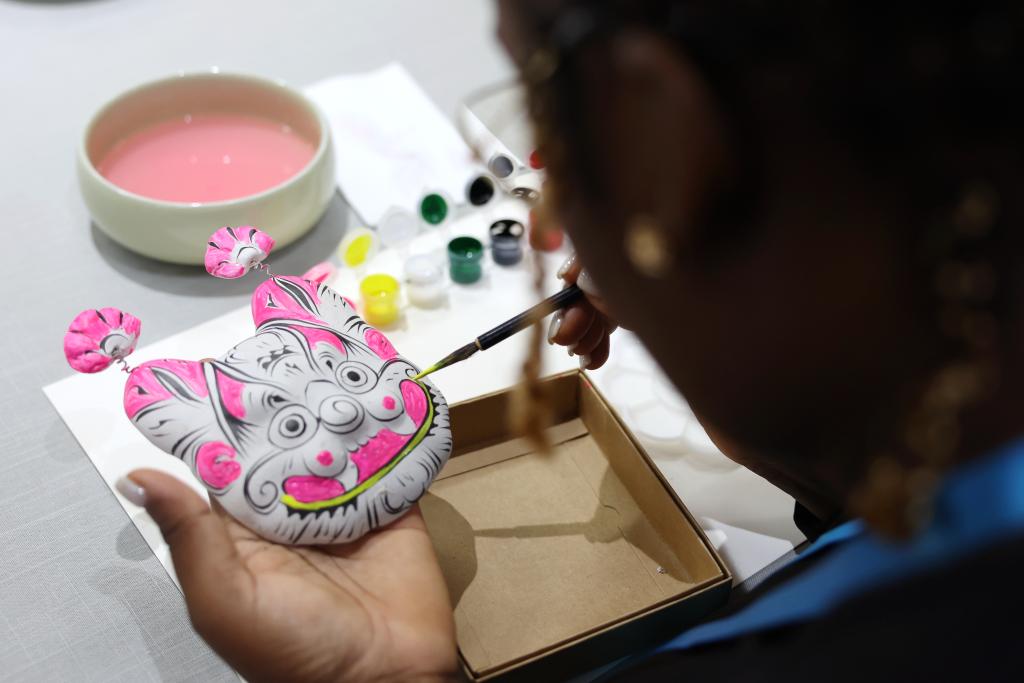 5月20日,非洲青年代表在体验泥塑彩绘。