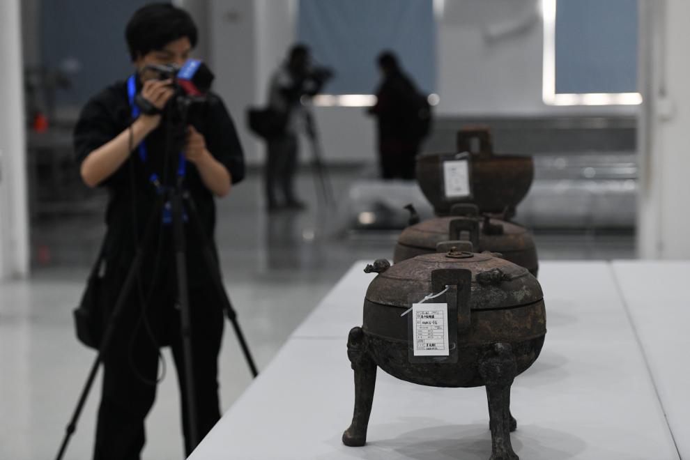5月20日,考古人员在武王墩考古实验室展示出土文物。