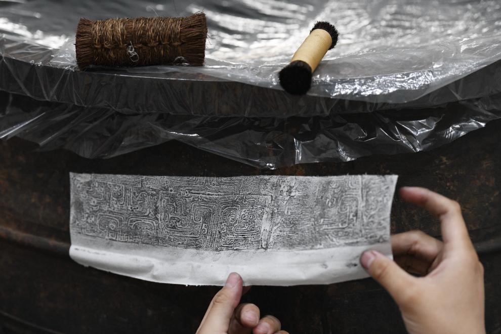 5月20日,考古人员在武王墩考古实验室观看文物细节。