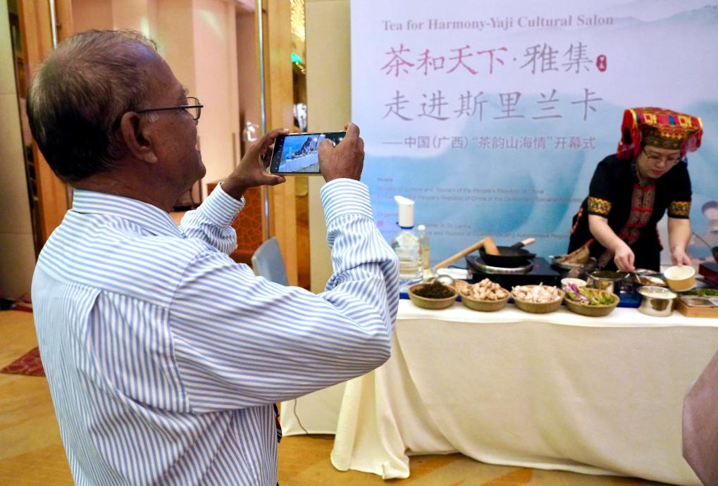新华社科伦坡5月21日电(记者陈冬书 车宏亮)5月21日是“国际茶日”,“茶和天下·雅集”暨中国(广西)文化旅游推介会当天在斯里兰卡首都科伦坡举行。当地中国茶艺爱好者沉浸式体验了联合国教科文组织人类非物质文化遗产“中国传统制茶技艺及其相关习俗”代表性项目广西六堡茶制作技艺和瑶族油茶习俗等茶文化。