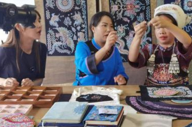 在三都水族自治县非遗项目体验中心,不仅有传统的背带、绣花鞋等民间收藏品,还有简约且现代感十足的装裱绣片和时装。在这里,游客可以体验马尾绣的制作技艺,因此成为不少游客的“打卡地”。