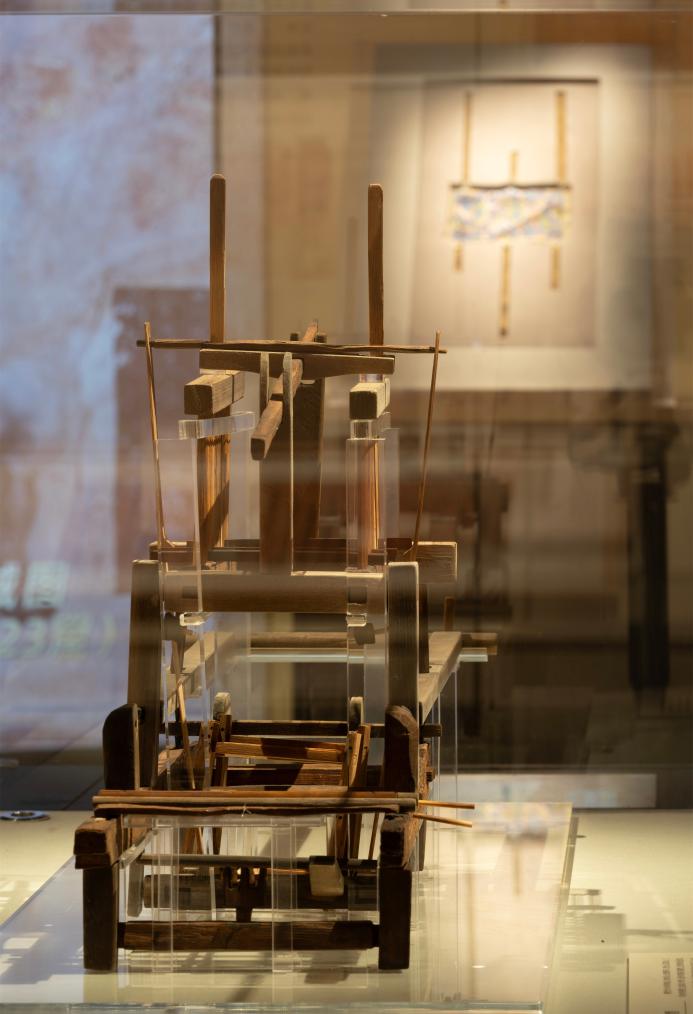 展览融入了古代四川灿烂的蜀锦文化内容,以新疆尼雅遗址出土的“五星出东方利中国”锦护臂(复制品)、成都老官山汉墓出土的汉代织机模型,以及古代丝绸之路沿线遗址出土的文字锦等,展示了新疆与四川两地间,以蜀锦为媒开展文化交流的悠久历史。