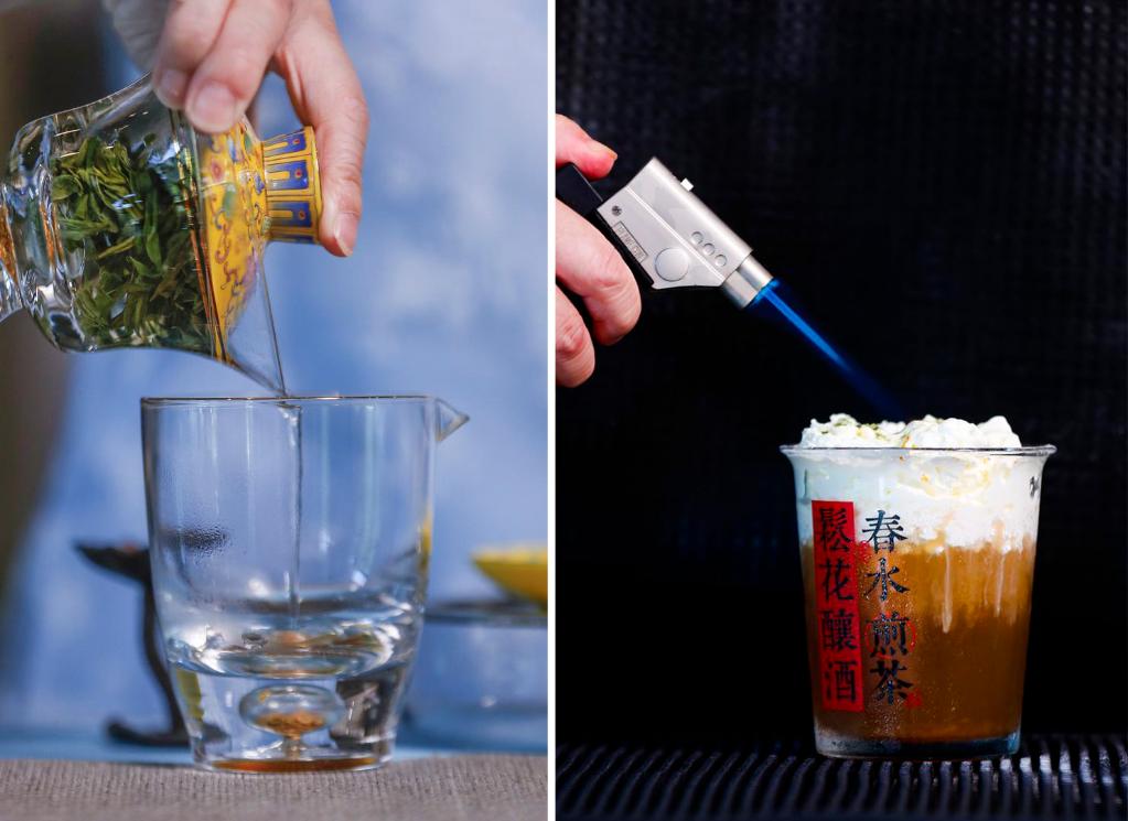 受调酒师的启发,她以传统黄山茶为基底,创新使用量杯、摇杯、喷枪等调酒器具,将茶与水果、中药、酒酿、冰块等材料进行充分调和,形成了风味、口感、外观各不相同的多样化产品。