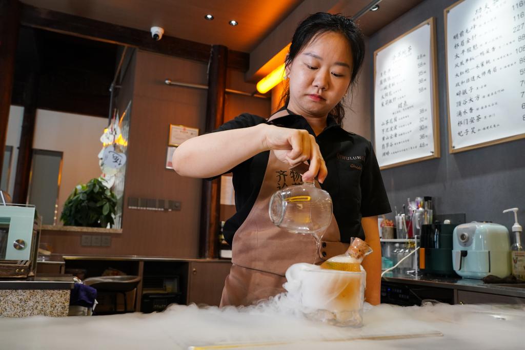 “新中式调饮”产品面市后,受到以“90后”“00后”为主流群体的消费者喜爱,前来寻求调饮技能培训的学员络绎不绝。