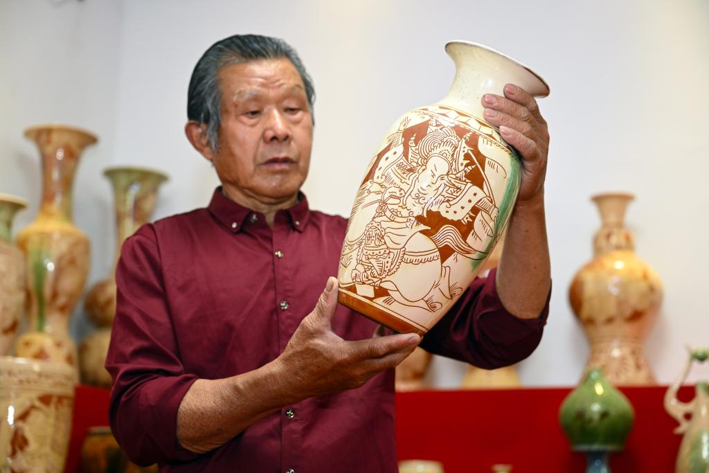 在推动体验与传承的过程中,界首彩陶也在创新中发展。界首彩陶刻画纹样由传统的花鸟鱼虫、戏剧场景,到表现科技发展、中外友谊等,题材日趋多元。