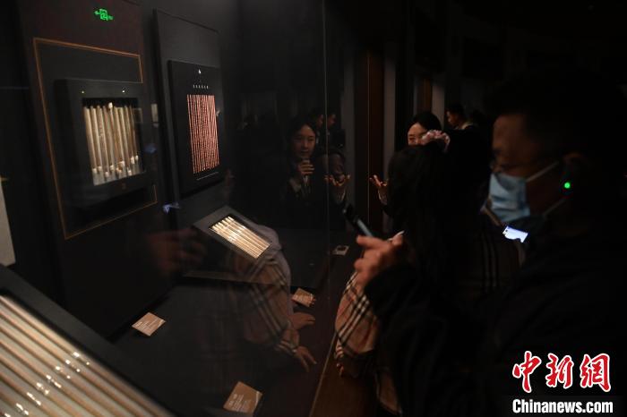 4月16日,甘肃省博物馆镇馆之宝汉代《医药木简》吸引参观者驻足参观。李亚龙 摄