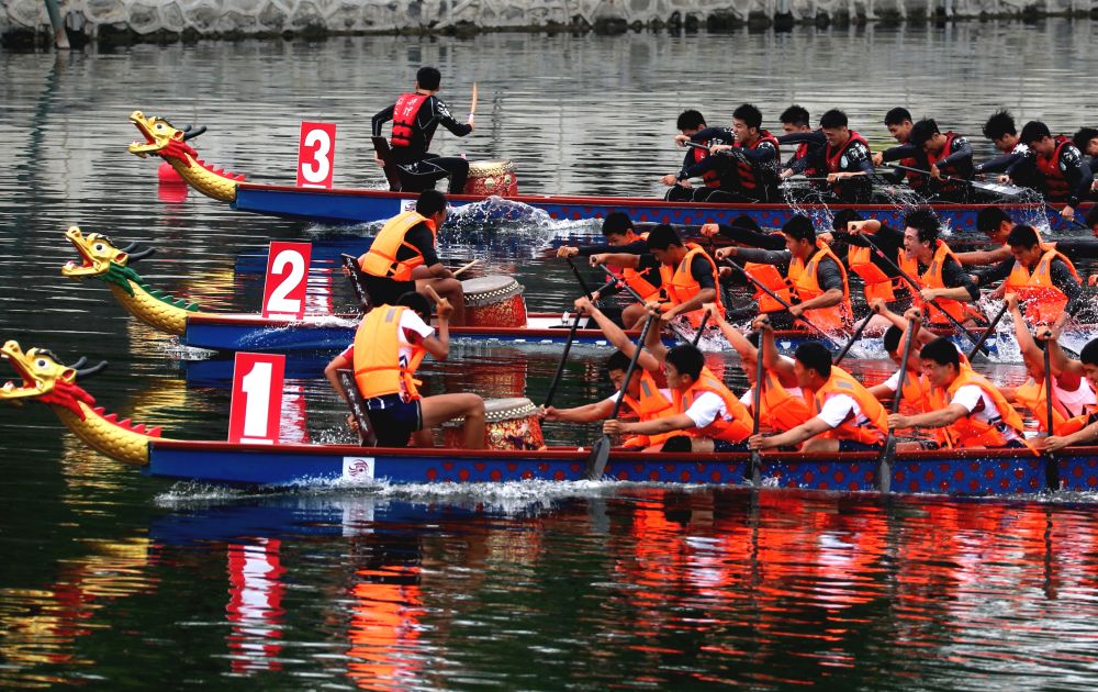 开幕式后,来自大运河沿线城市以及清华大学、北京大学等12支龙舟队齐聚什刹海,在中国大运河世界遗产的北端点同场竞技,仲夏争时。经过多轮激烈角逐,最终,河北省沧州市龙舟队获得冠军。