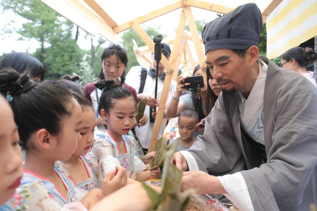 “诸葛亮”教小朋友包粽子。 成都武侯祠博物馆供图