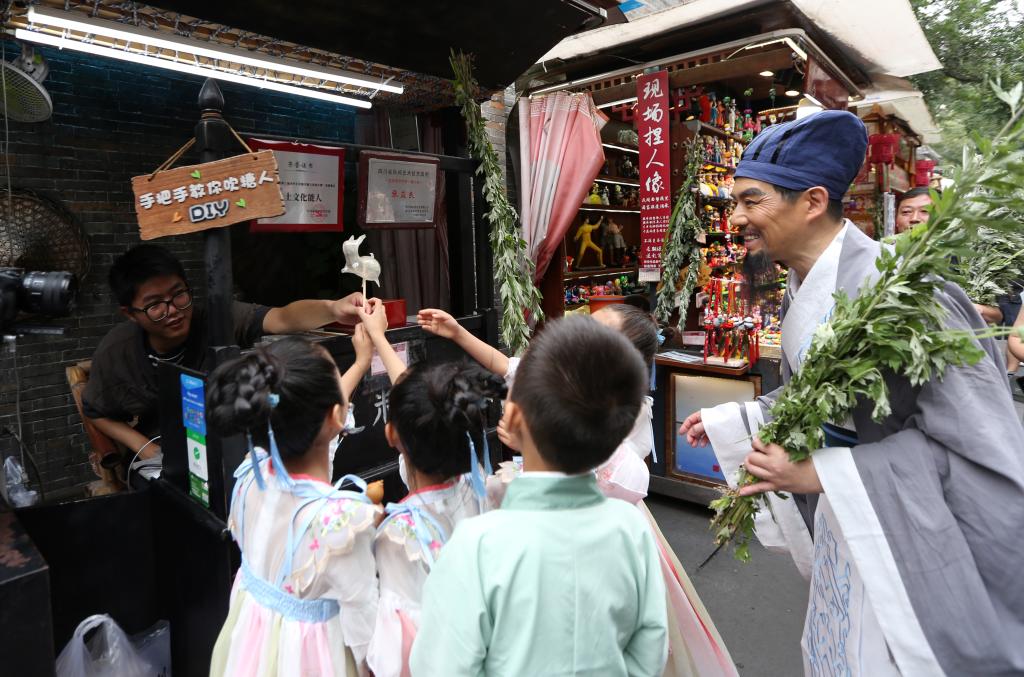 5月8日,成都武侯祠博物馆启动以“端午传非遗 雅韵游武侯”为主题的文化和自然遗产日暨端午民俗活动,让各地游客走近蜀汉文脉,体验三国文化。