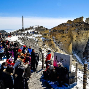 长白山天池景区游人如织。新华社记者 许畅 摄
