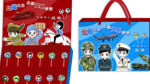 设计说明:产品由“棒”字联想到受大众喜爱的小食品棒棒糖,以此创意设计包含“红色”元素的文创棒棒糖,传承红色基因,向所有为中华复兴而努力奋斗的中国军人致敬!