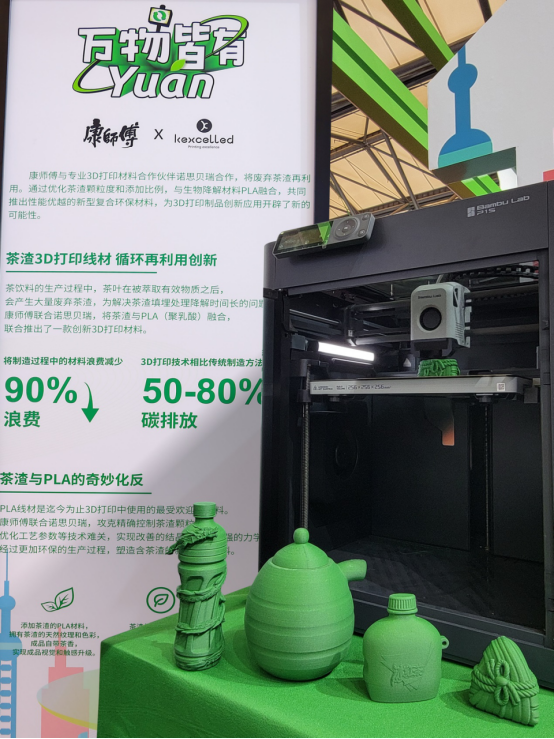 碳博会康师傅展示含茶渣的新型环保3D打印材料