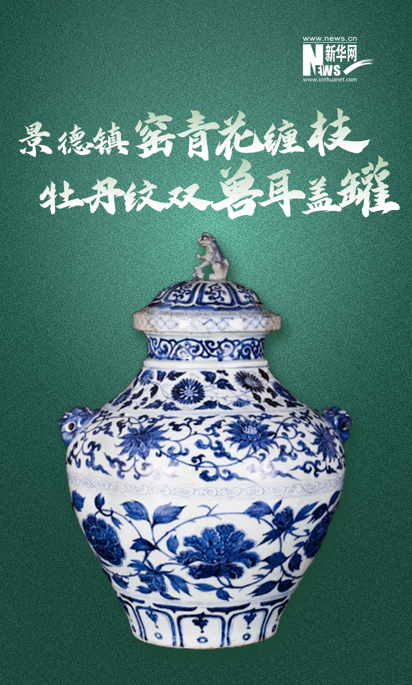 (元)景德镇窑青花缠枝牡丹纹双兽耳盖罐现藏于淮安中国漕运博物馆