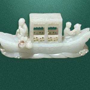 (清)青白玉渔家乐船形摆件,现藏于中国大运河博物馆