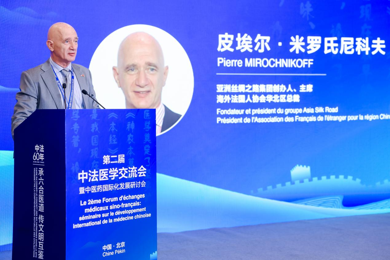 海外法国人协会华北区总裁皮埃尔·米罗氏尼科夫用“中医不再是神秘的另类疗法,而是通往健康之路的伙伴”这句话诠释了法国人眼中的中医。在致辞中,他提出了“缩小知识鸿沟”“促进理解”“携手合作”的倡议。他希望两国相关领域人士共同努力,迎接中医在全球医疗保健领域占据应有地位的美好未来。