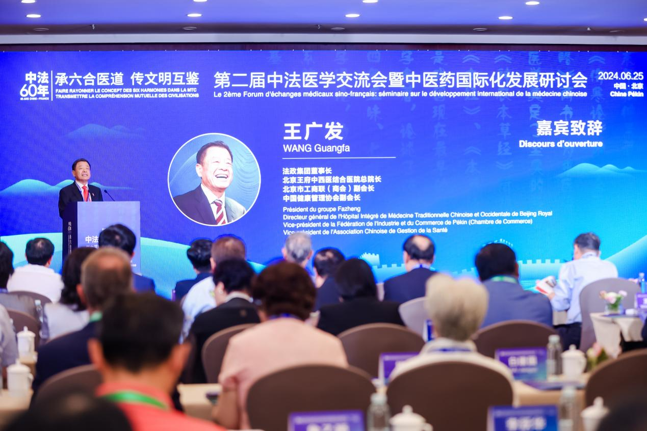 6月25日,由北京中医药学会、世界中医药学会联合会、世界针灸学会联合会、法国索邦大学巴黎北校区医学院、法政集团、北京王府中西医结合医院和北京王府公益基金会共同举办的“承六合医道·传文明互鉴”第二届中法医学交流会暨中医药国际化发展研讨会在北京国际会议中心举行。
