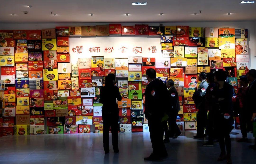 游客参观柳州市螺蛳粉饮食文化博物馆里的螺蛳粉全家福。(资料图)