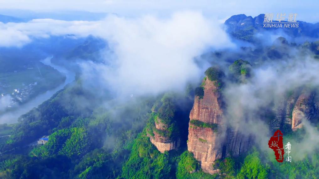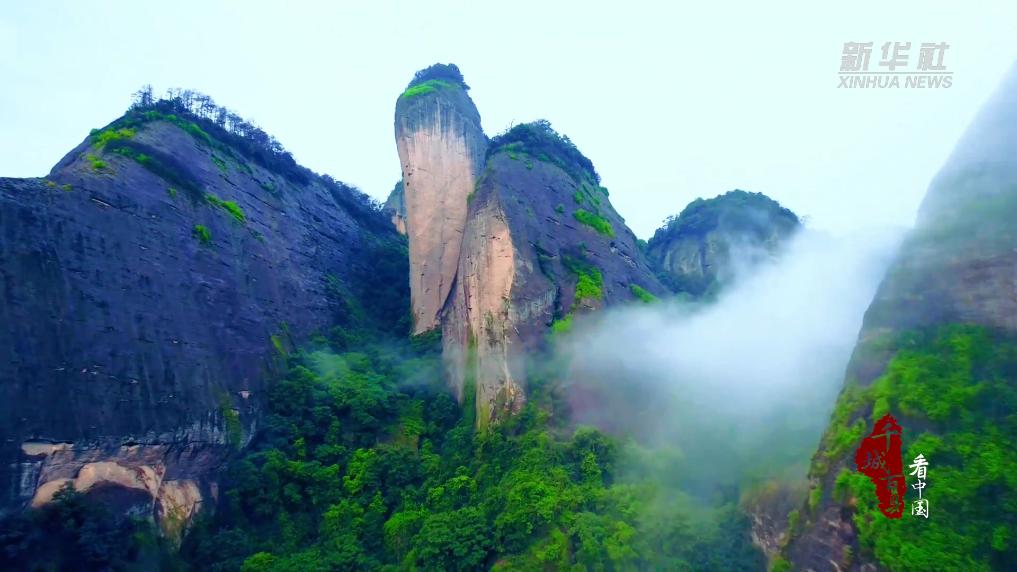 崀山位于湖南省邵阳市新宁县崀山镇境内,属于典型的丹霞峰丛、峰林地貌景观,是一座天然的丹霞地貌博物馆。夏至过后,雨后的崀山云雾缭绕,缥缈之中,群山逶迤起伏,如梦如幻。
