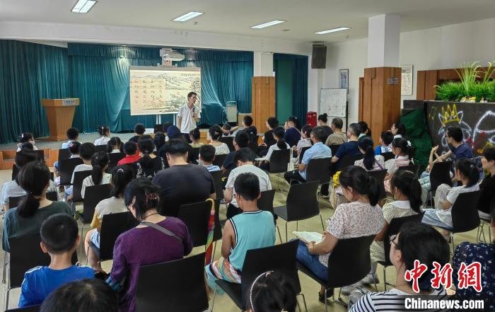 宁波图书馆“共读Moment·阅经典”活动现场几乎座无虚席,当地知名语文教师北辰为孩子们讲解柳宗元的《江雪》。 中新网记者 应妮 摄