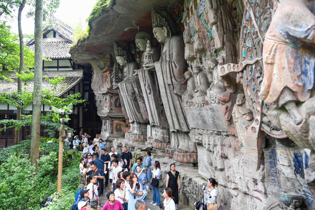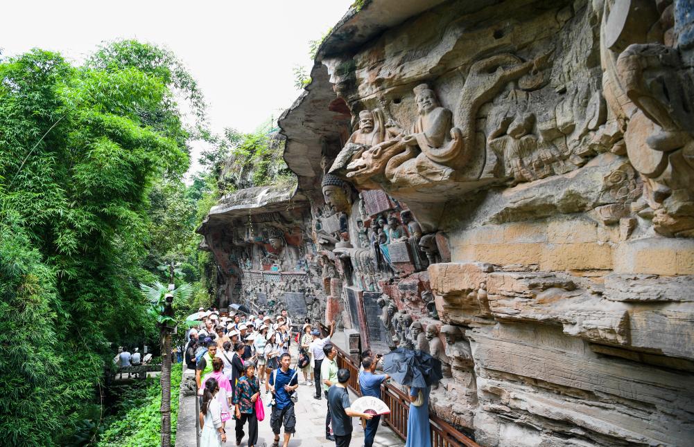 暑假期间,世界文化遗产大足石刻景区旅游热度持续攀升。
