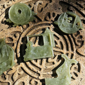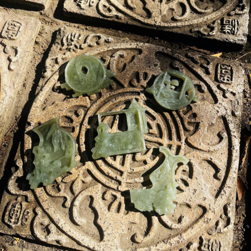作品灵感来自于广东清晖园,清晖园作为中国十大名园之一,巧妙利用了门洞、碧水、绿树、古墙、漏窗、石山、小桥、曲廊等与亭台楼阁交互融合,集中国古代建筑、园林、雕刻、诗书、灰雕等艺术于一身。在挑选了五处风景将其元素提炼浓缩之后,设计出了,这五款手把件,无论带上其中哪一个,都仿佛将清晖园的美景随身携带。作品制作材料采用了青海和田玉进行表现,加工工艺上运用了浮雕表现以及镂空技法。