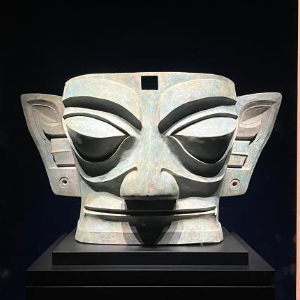 四川省广汉市三星堆博物馆的青铜面具。曾玥 摄