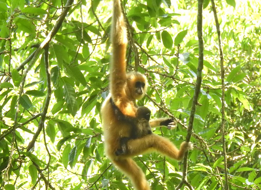海南热带雨林国家公园是海南岛的生态安全屏障。近年来,雨林生境持续改善,长臂猿种群数量恢复到6群37只。海南热带雨林国家公园科学开展热带雨林系统修复,人工促进修复受损天然林及退化次生林,逐步恢复雨林生态系统。