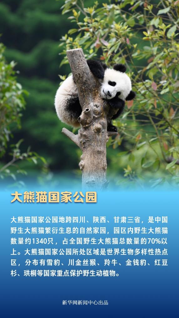 2021年10月12日,中国正式设立三江源、大熊猫、东北虎豹、海南热带雨林、武夷山等第一批国家公园,保护面积达23万平方公里,涵盖近30%的陆域国家重点保护野生动植物种类。