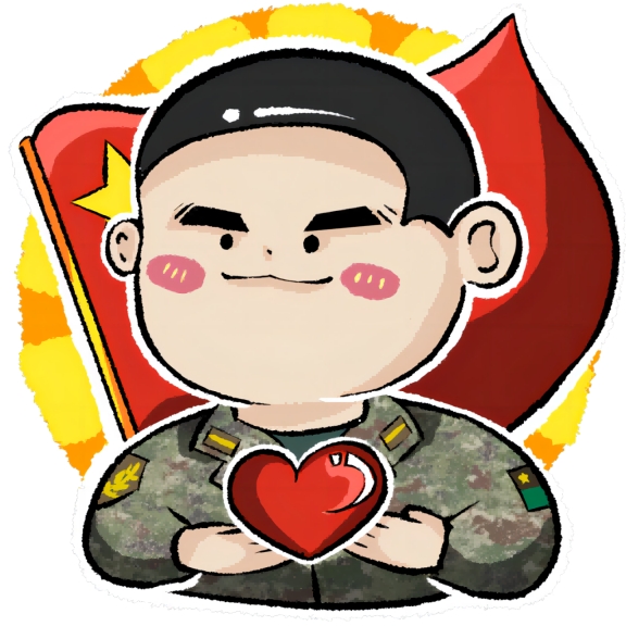 在人物设计方面,采用人们喜闻乐见的现代卡通表现手法,剑眉、豆豆眼、微笑唇,整体在体现中国军人干净利索和英俊帅气的同时,也保留了学员活泼开朗的风格,使其更具亲切感。同时人物共有常服、迷彩和体能三套服装,全面展现了军校学员日常穿搭。