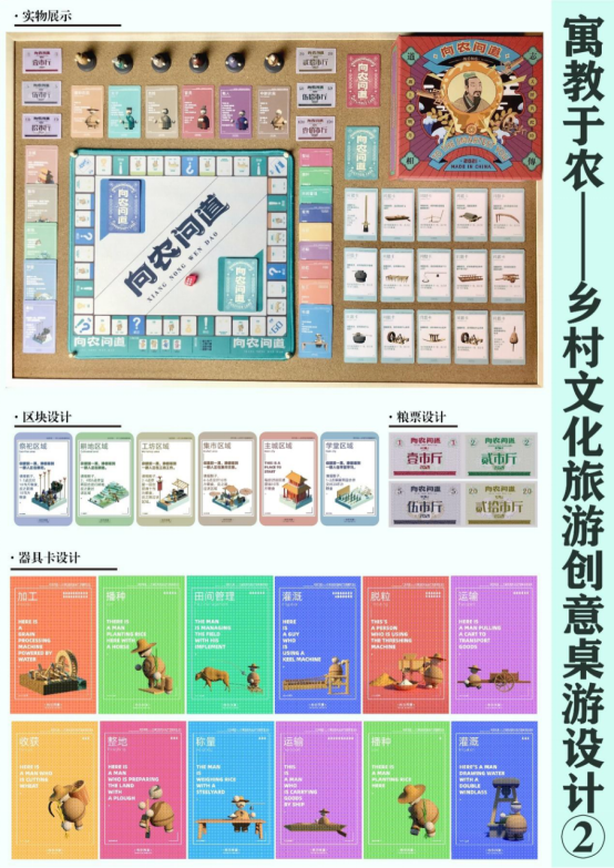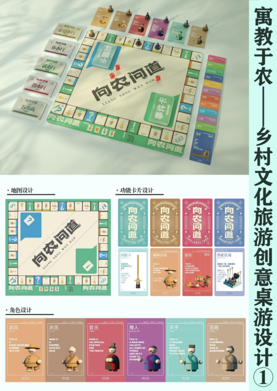 以通俗易懂的大富翁式桌游为载体,将乡村文化融入到娱乐性的通俗物中,拉近乡村文化与现代生活的距离。旨在通过科普游戏的制作与实施,给予体验者一个真正能够摸得到的设计,在保证游戏的趣味性下让观者在轻松愉悦的体验中“玩”着学到中国传统乡村文化相关知识。