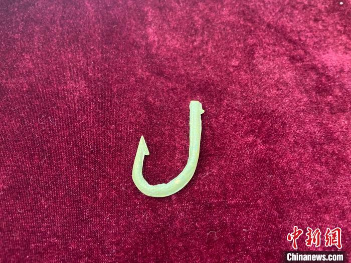 7月23日开放展示的战国鱼钩。林波摄