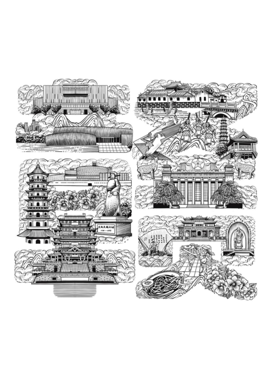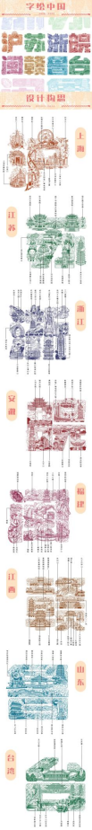 本设计以“字绘中国”华东地区系列插画为主题,选取了华东地区的八个城市简称——沪、苏、浙、皖、闽、赣、鲁、台,通过字绘的艺术形式,将每个城市的地标建筑与独特的风俗民情巧妙地融合在字体结构中,旨在展现华东地区的丰富多样与深厚底蕴。