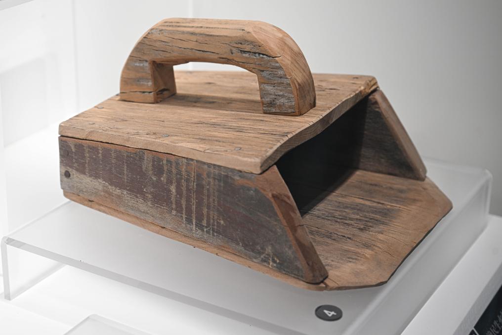 7月26日在海南疍家博物馆拍摄的木枕头。