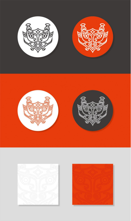 设计参照“武丁龙盤、妇好龙盤和舟龙盤”的共同特征,高度凝炼出“龙盤”LOGO元素。