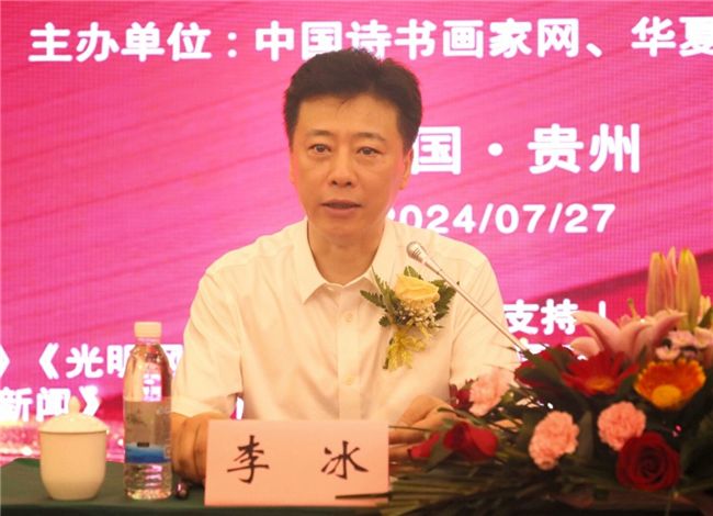 (中国硬笔书法协会党支部书记、驻会副主席兼秘书长李冰在讲话)