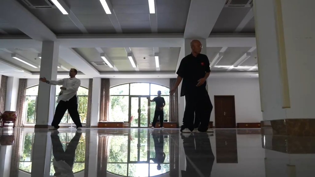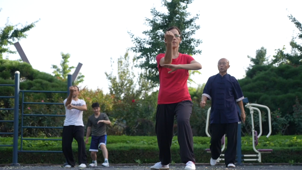 山东烟台龙口市一处训练场馆内,六合螳螂拳第七代传人张道锦身着练功服穿梭于场上。身后,“洋弟子”马泰奥·布法跟着练习起来,一招一式学得有板有眼。