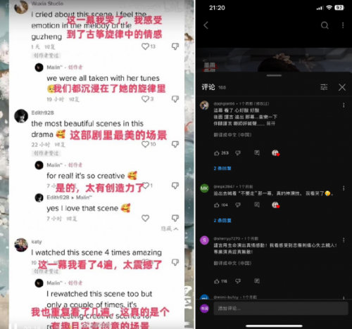 以《墨雨云间》为例,该剧主演吴谨言、王星越在国外社交媒体平台上的大众认知度有了显著提升。吴谨言在剧播期间ins持续涨粉,其饰演的薛芳菲弹奏古筝曲《芳菲落尽梨花白》时的悲壮、痛失桐儿后的伤心欲绝令海外观众深度共鸣,情感打破语言限制,展现直抵人心的力量,不少国外网友评价“看哭了”“太震撼了”。不积跬步无以至千里,青年演员的成长离不开作品的淬炼。“涨粉”不仅意味着作为青年演员的吴谨言进一步打开海外市场的知名度,更是对其长期笃行打磨演技的脚注与回馈。