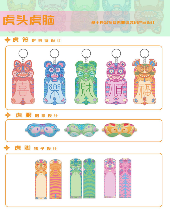 2.虎眼:以黎侯虎的眼部图案进行创作,结合年轻人的独特审美,设计一款新颖又具有传统色彩的眼罩,创意十足,寓意吉祥。