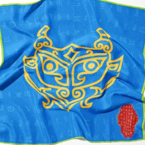 设计灵感来自河南安阳殷墟出土的“甲骨文”和“龙盤”图案,参照“武丁龙盤、妇好龙盤和舟龙盤”的共同特征,高度凝炼出“龙盤”LOGO元素。并以此制作出丝巾。