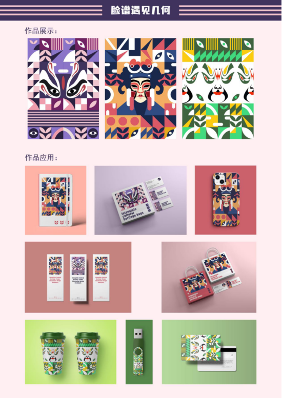 此插画设计灵感来源于川剧脸谱的丰富色彩和独特的艺术风格,结合现代元素,创造出一个既传统又现代的艺术作品。提取川剧的脸谱元素微调并绘制出来,再融合现代的几何图形和抽象元素,使整个画面既有传统文化的底蕴,又不失现代感。