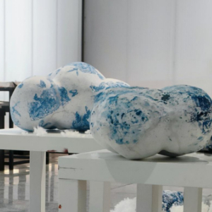 本组作品将云的造型与青花装饰结合起来,发挥出自然之物所带来的自由感与舒适感,力求展示出一片宁静安逸的空间,走入观众的内心世界,使陶艺作品更具亲和力与感染力。青花装饰方法受到波普艺术风格的启发,采用剪切、拼贴、喷绘及手绘相结合的方法,作品基于云形象的设计展开,重点关注云形象的立体化表达。