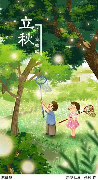 蝉之于秋日,犹如流萤之于夏夜,都是古代文人墨客诗句中常见的意象。宋代诗人杨万里曾作《立秋日闻蝉》,写了自己不忍酷热盼秋至的愁绪,终于一场雨后秋来了,蝉声开始传递秋的消息。诗曰:“老火薰人欲破头,唤秋不到得人愁。夜来一雨将秋至,今晚蝉声始报秋。”