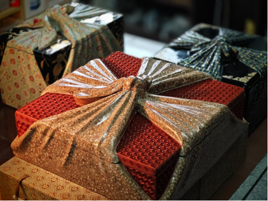 设计灵感源自故宫博物院珍藏的清代雍正时期的艺术瑰宝——“描金彩漆包袱式纹长方形盒”,原作为雍正案头心爱之物。